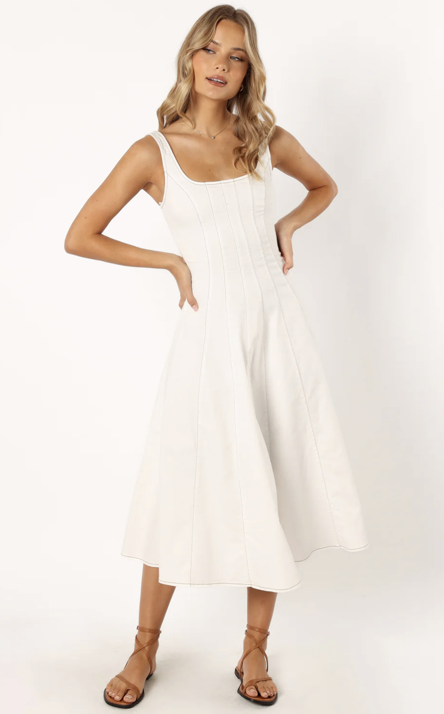 A square neckline, adjustable straps, and an A-line skirt make this such an easy white dress for graduation that just works on everyone. It's got that simple, classic vibe that you can dress up or down depending on your graduation outfit vision!