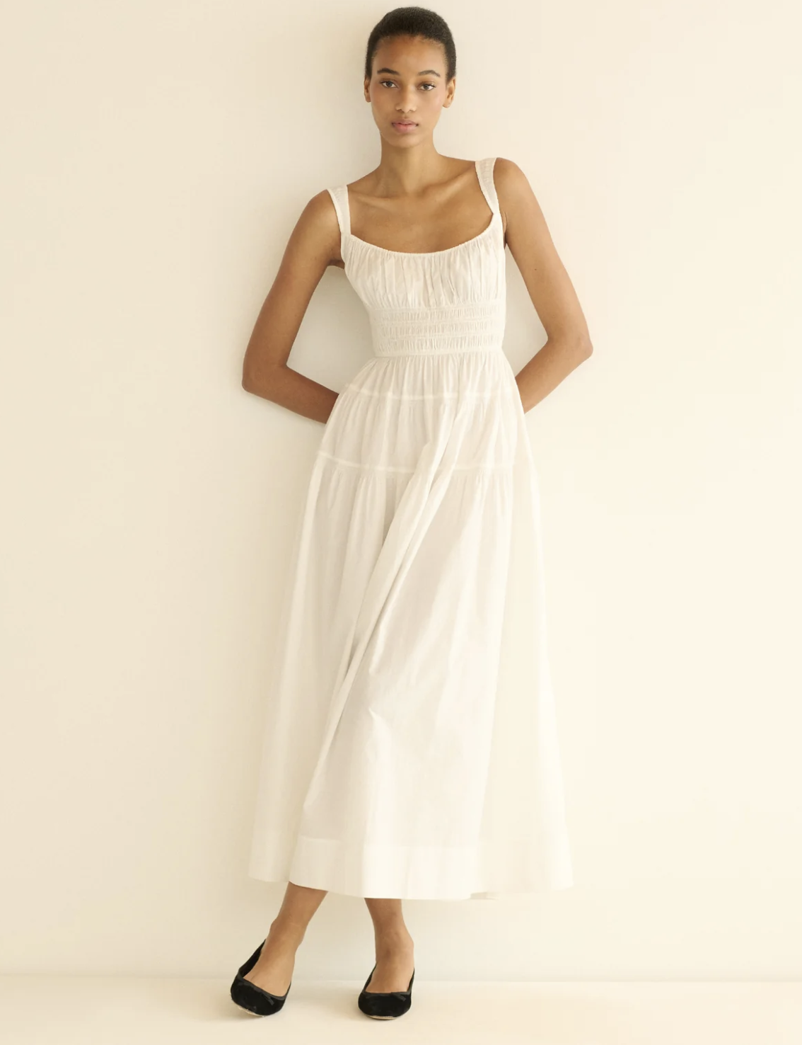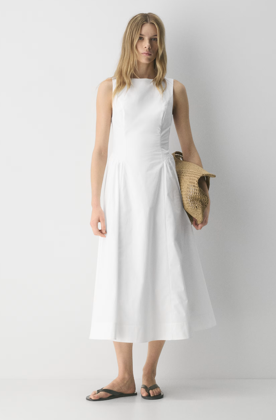 A crisp white dress in lightweight poplin with a clean, easy silhouette. It feels polished but unfussy, the perfect dress to keep cool!