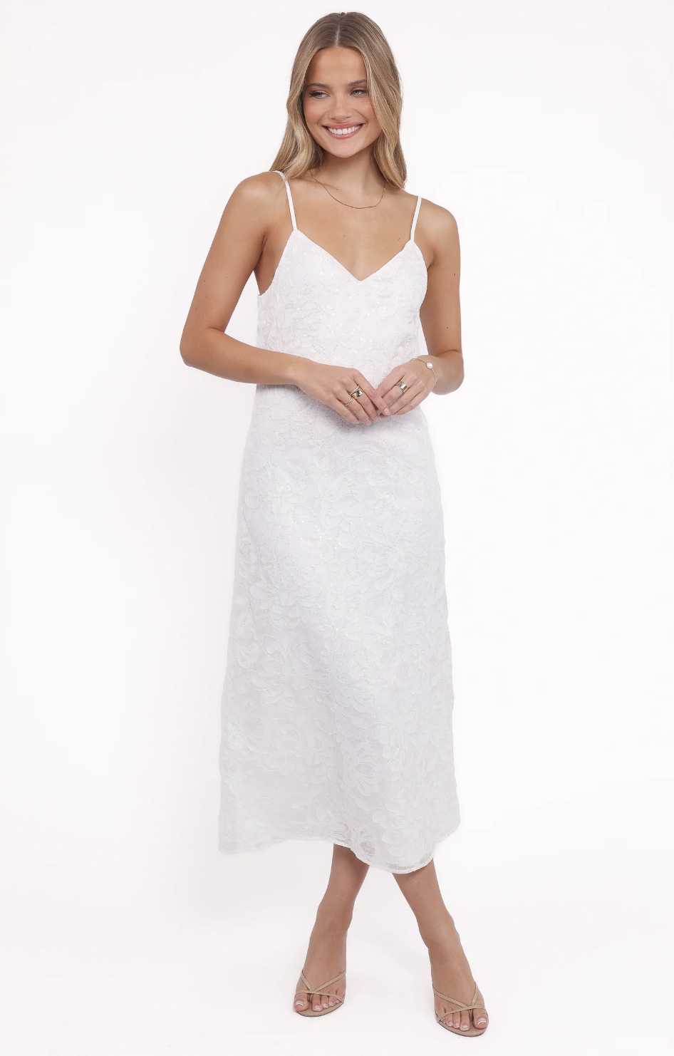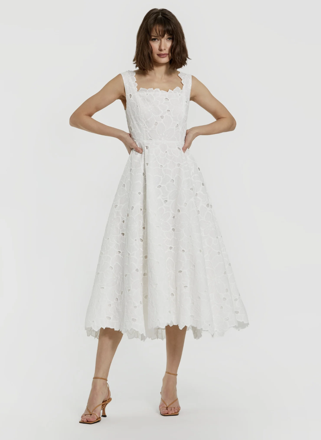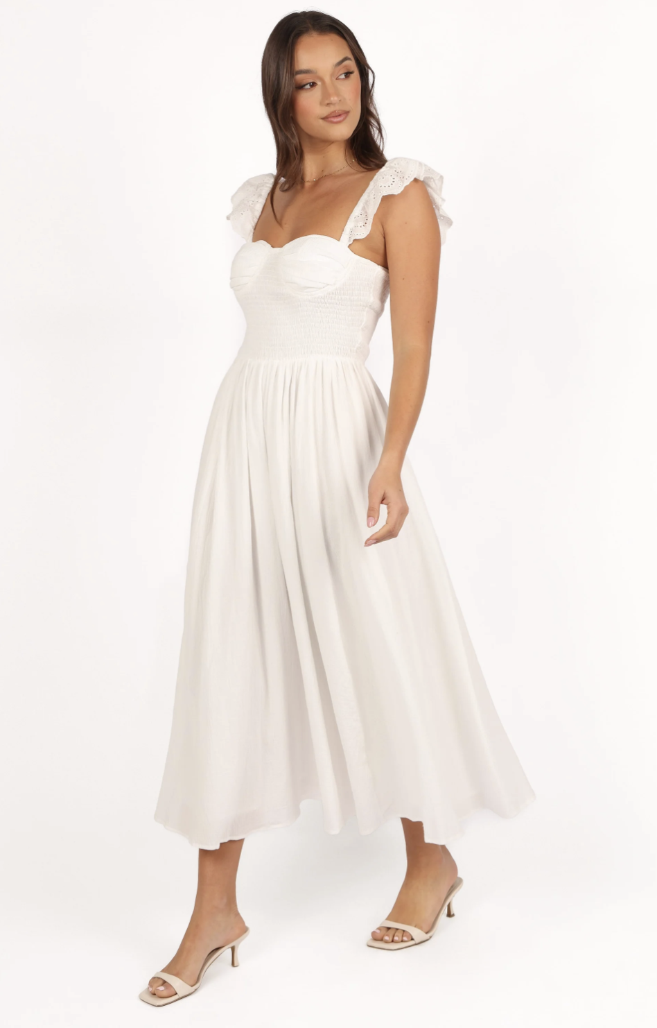 This white eyelet drop waist midi is a white graduation dress daydream, and did we mention it has POCKETS! The gathered skirt and ultra feminine silhouette make this one so easy to love.