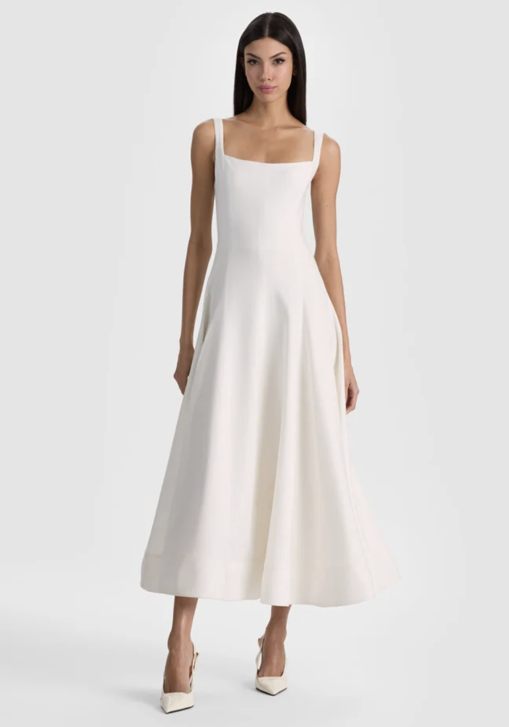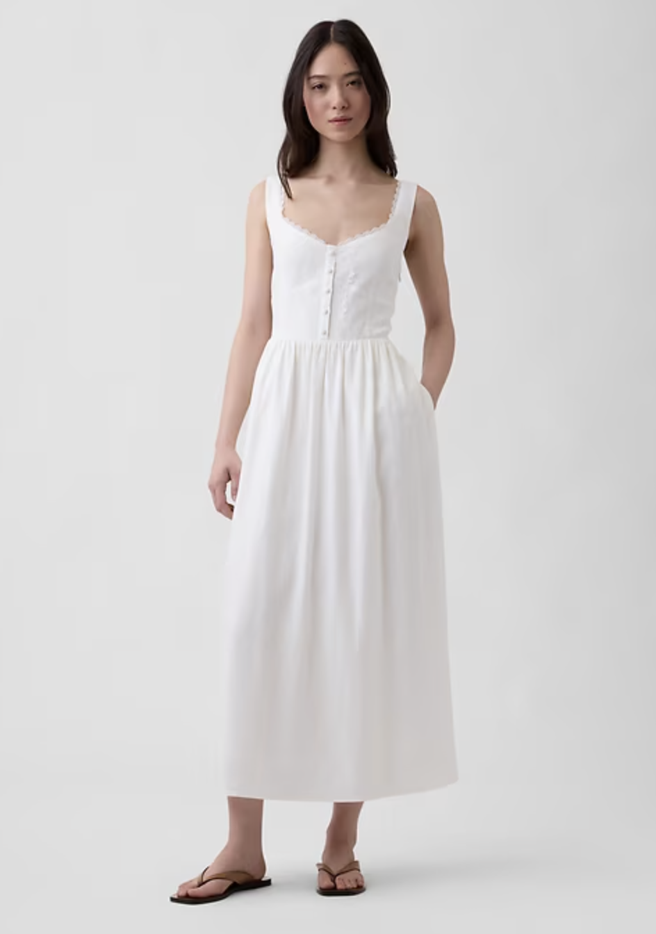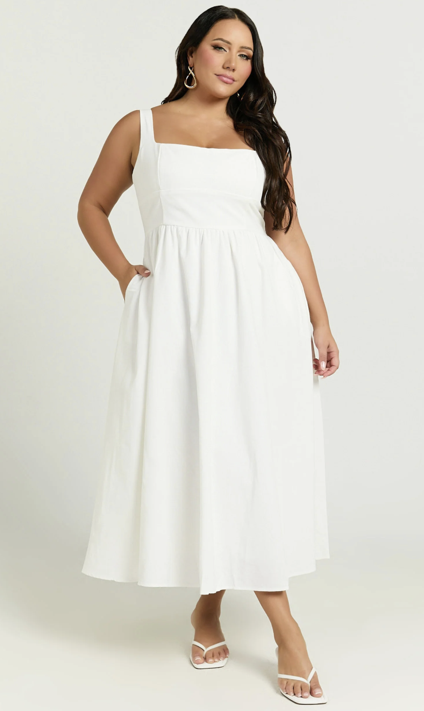 If you want a white graduation dress that feels effortless and relaxed, this linen-look square neck A-line is such a good pick. The airy fabric and midi length give it that polished but easy vibe that works so well for graduation day!