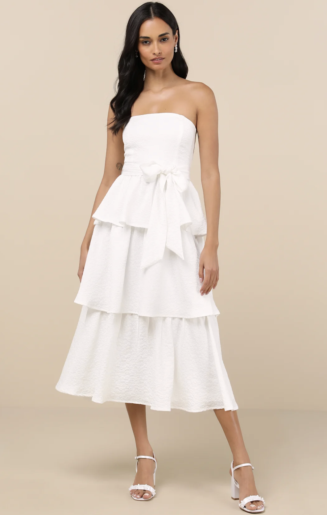 Looking for something with a teeny bit more length but still with a little leg? The midi length dresses are for you! I’ve curated a list of my favorite 15 midi length white graduation dresses for your choosing. From satin to lace, there’s something for everyone.