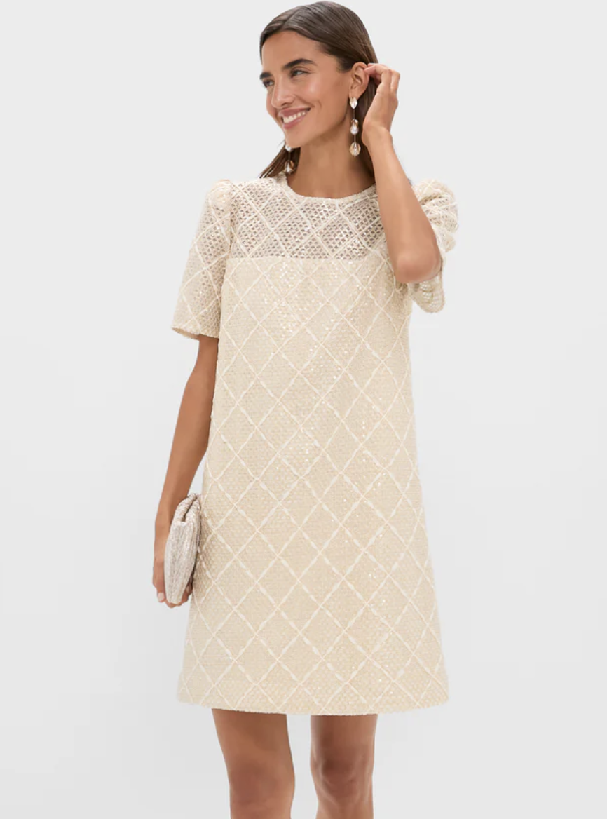 If I had an unlimited budget, I fear I would have to buy this dress immediately. I’m obsessed with the flower details on the hips, while still having this classic boatneck. It looks beautiful with a twist of something special!
