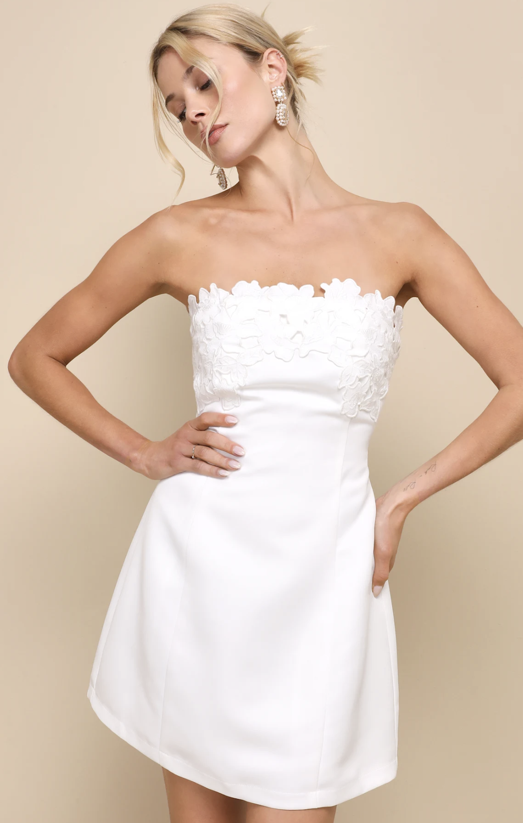 Love a strapless moment! The floral elements add something fun to a classic silhouette. Gorgeous for graduation.