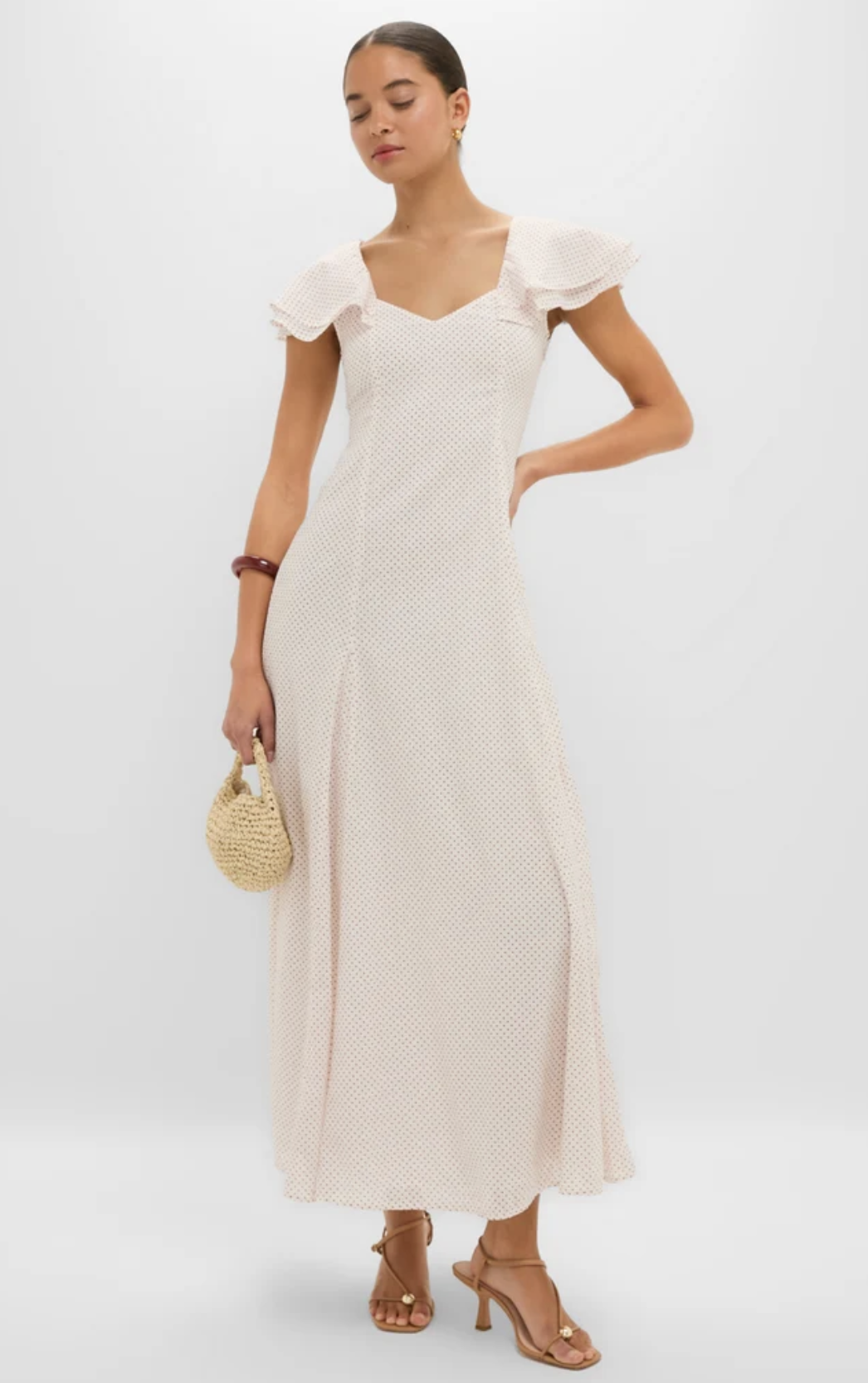 If you want your graduation outfit to have a little more personality, this cream and red polka dot flutter dress with its flirty ruffled cap sleeves is such a good pick. The lightweight cotton-voile and nipped waist make it the kind of white dress for graduation that feels timeless but totally fun!