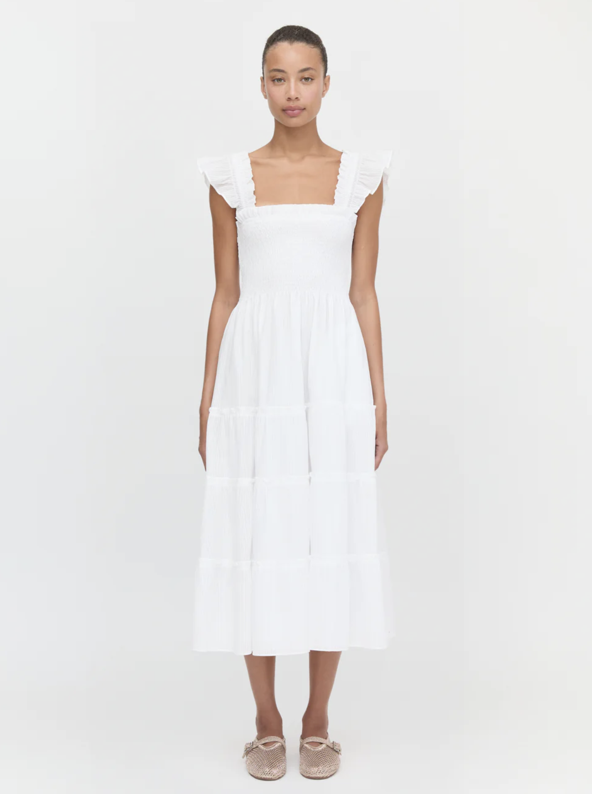 Flowy and dreamy, this dress is so easy. Its soft, airy fabric makes it effortless and perfect for celebrating in style.